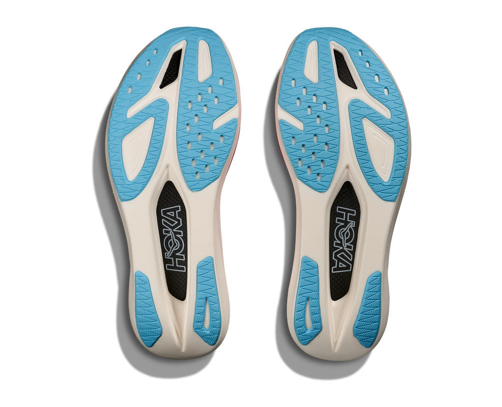 Der Schuh wurde für den Wettkampf entwickelt und bietet den leichtesten Schaumstoff in der Geschichte von HOKA, eine weiche Zwischensohlenverstärkung, eine Oberkonstruktion aus atmungsaktivem Netzstoff und eine leichte, gummierte Außensohle aus Schaumstoff, die das Gewicht reduziert.